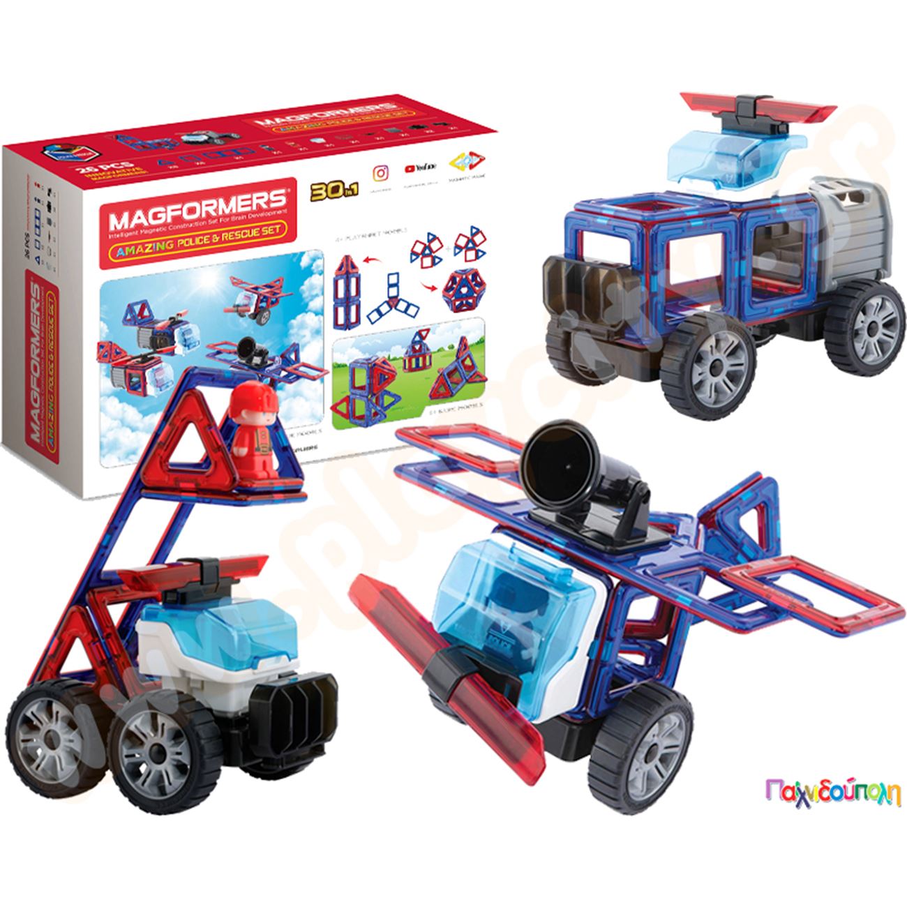 Μαγνητικά τουβλάκια κατασκευών MagFormers Amazing Police and Rescue 26 τεμαχίων
