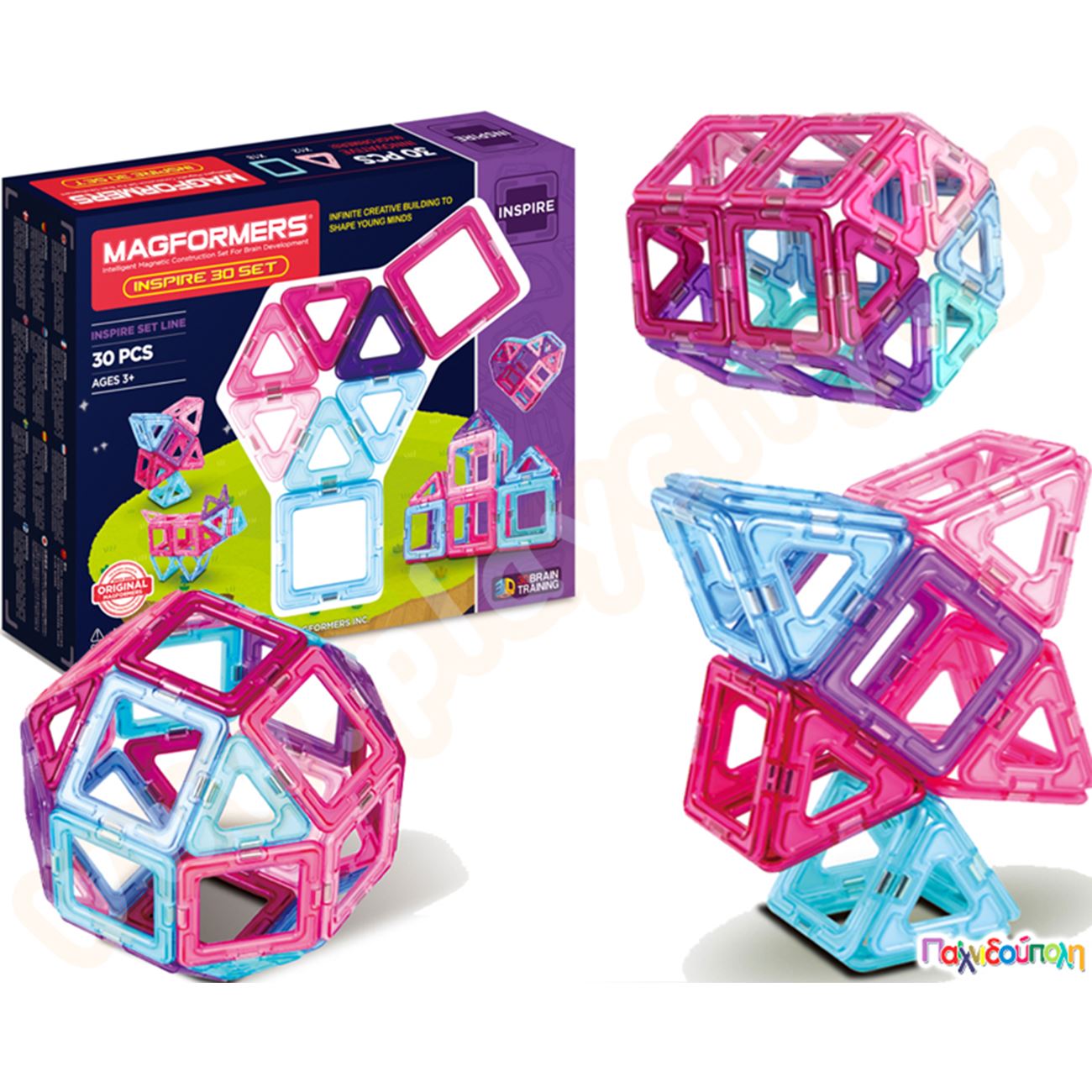 Μαγνητικά τουβλάκια κατασκευών MagFormers Inspire 30 τεμαχίων