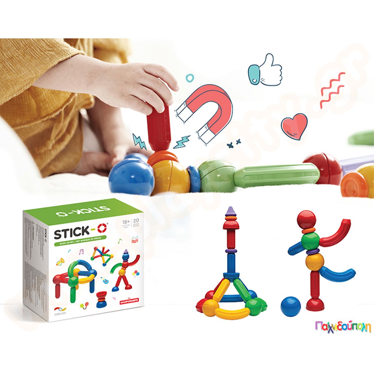 Βρεφικά μαγνητικά τουβλάκια Stick-O 20 τεμάχια (36 μοντέλα)