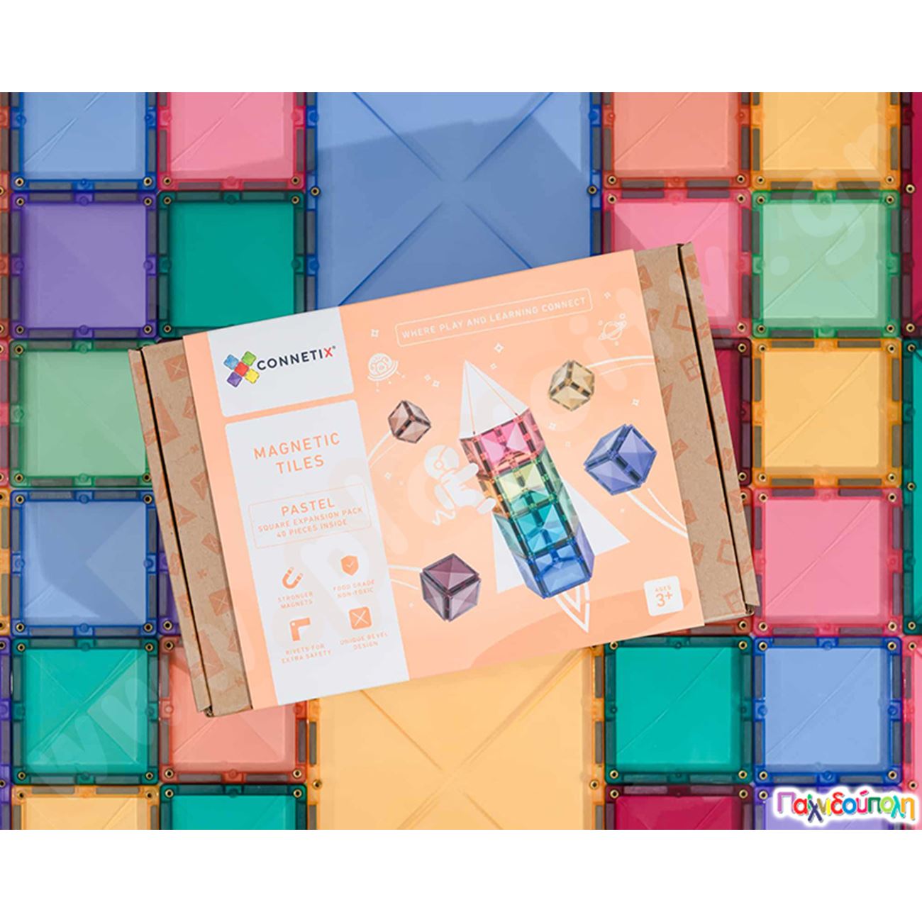 Μαγνητικά τουβλάκια κατασκευών Connetix Pastel Square Σετ 40 τεμάχια