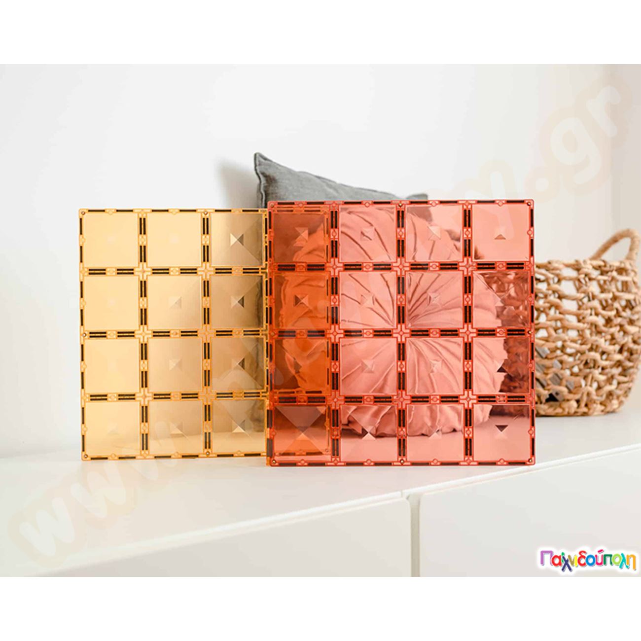 Μαγνητικά τουβλάκια κατασκευών Connetix Βάσεις Παστέλ Πορτοκαλί Σετ 2 τεμάχια