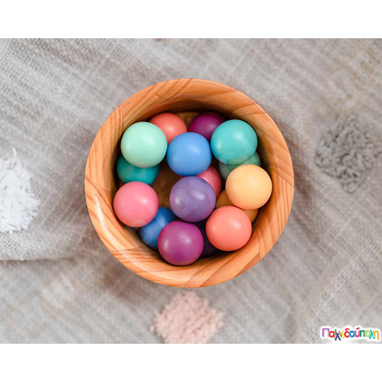 Μαγνητικά τουβλάκια κατασκευών Ξύλινες Μπάλες Παστέλ 16 τεμάχια