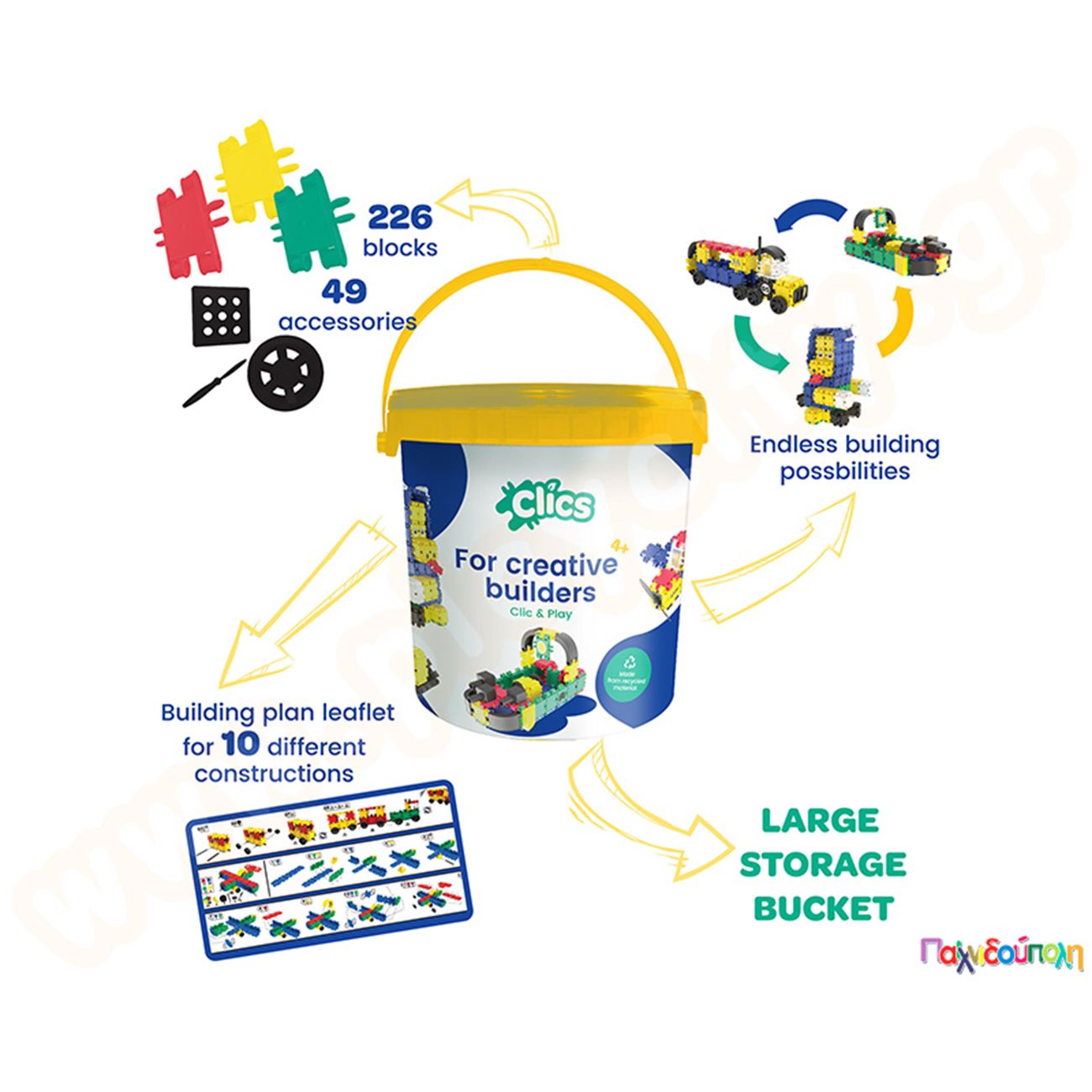 Κατασκευαστικό Σετ Clics (κουβάς με 275 τεμάχια)