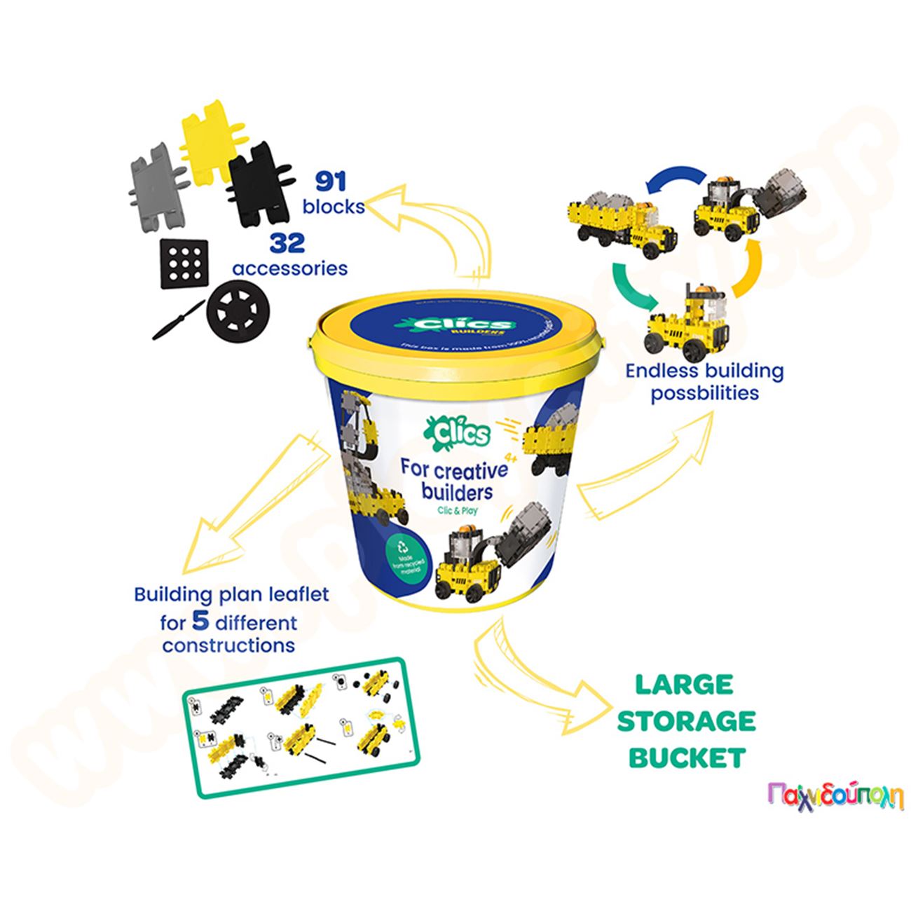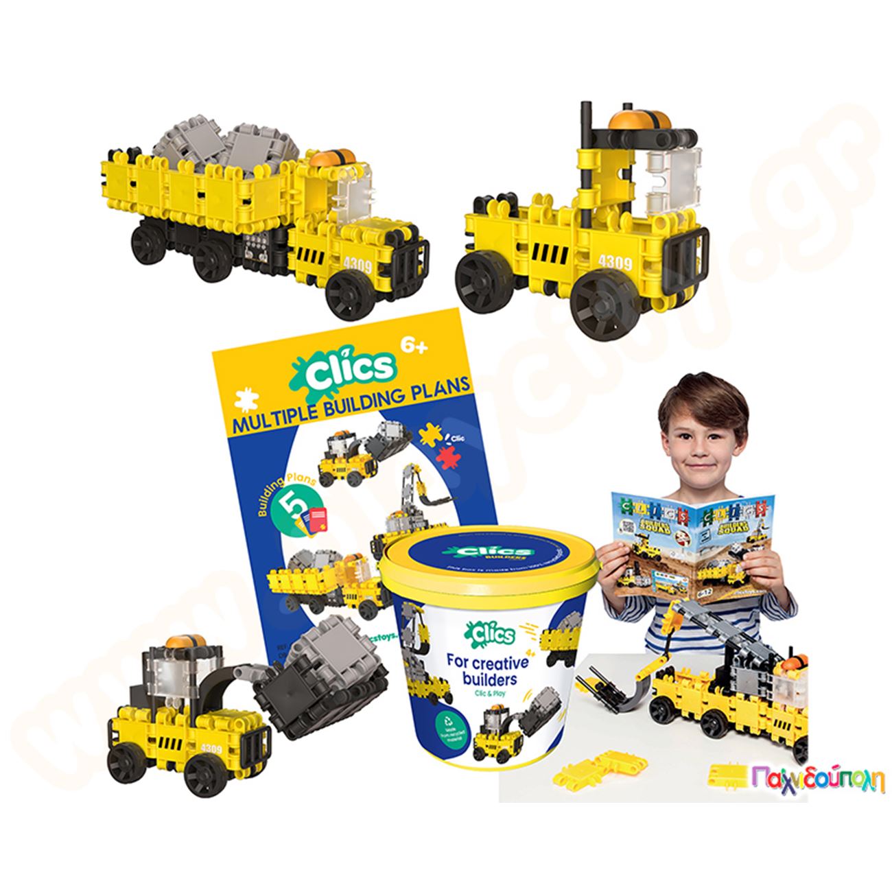 Κατασκευαστικό Σετ Εργοτάξιο Clics (κουβάς με 123 τεμάχια)