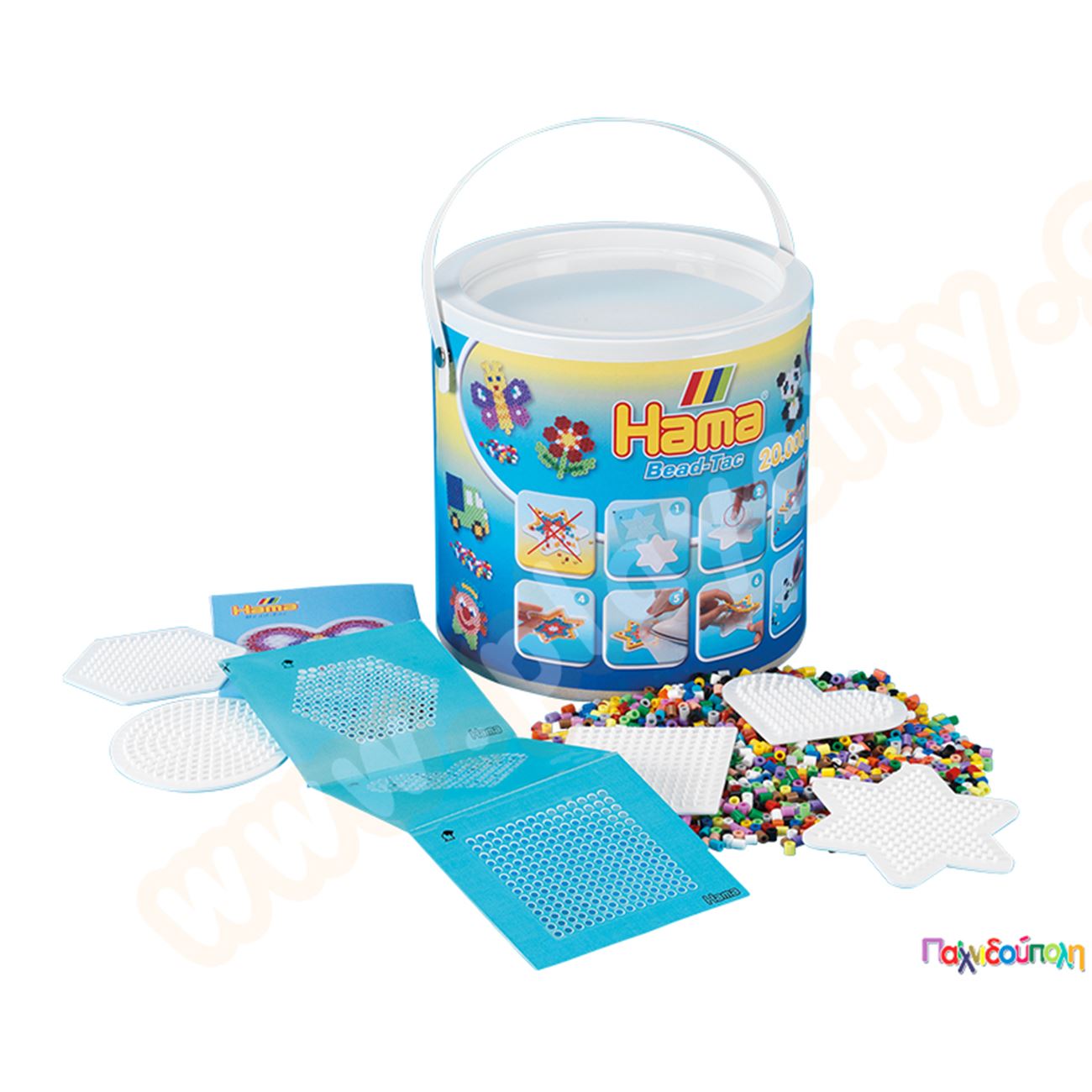 Χάντρες 5mm 20000 τμχ. σε υπέροχο κουβαδάκι με 5 κάδρα HAMA