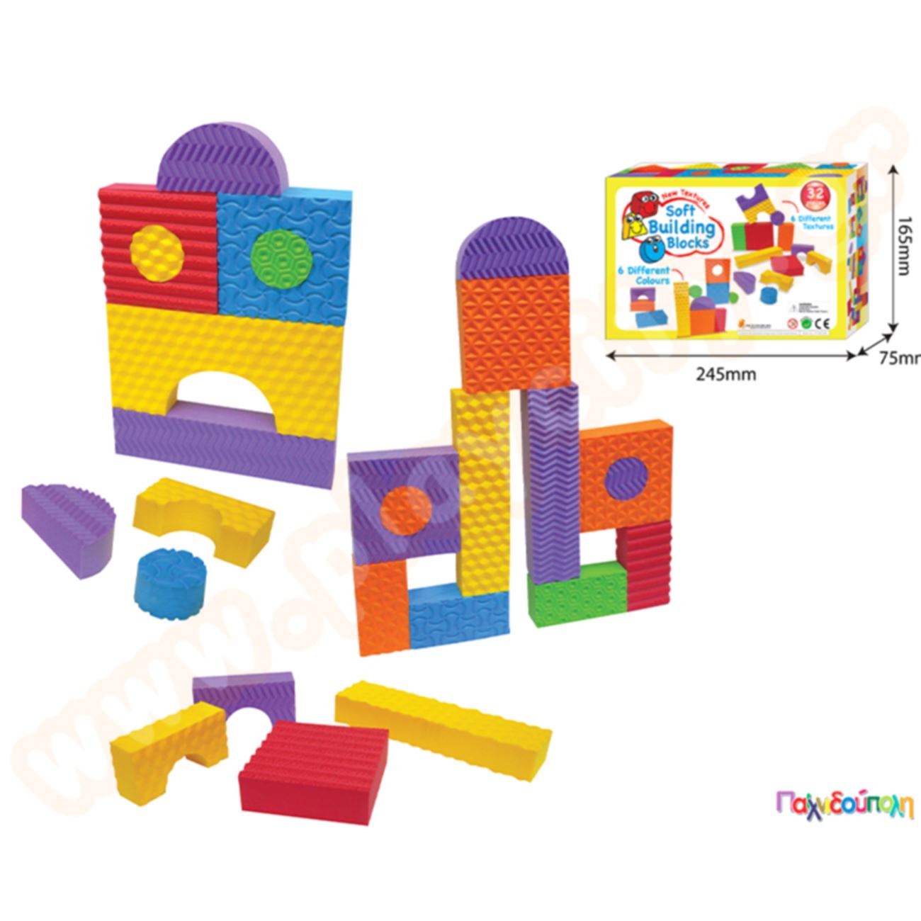 Αφρώδη γεωμετρικά στερεά-τουβλάκια με διαφορετική υφή 32 τεμάχια