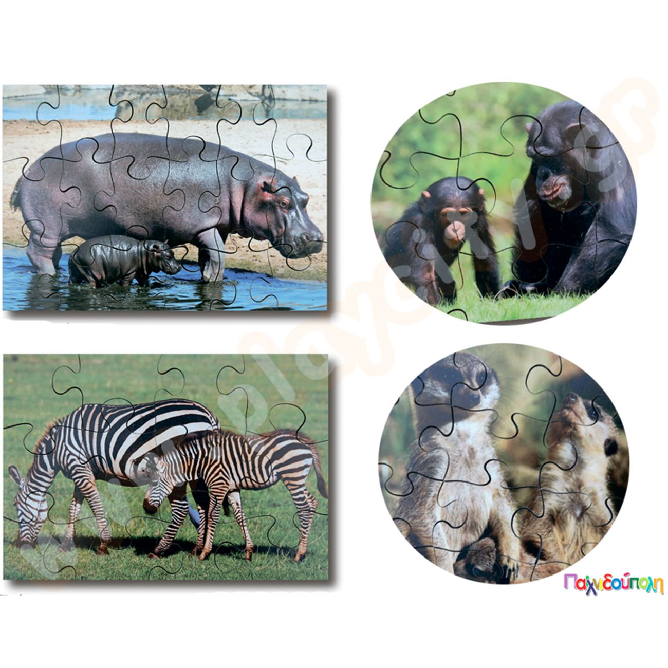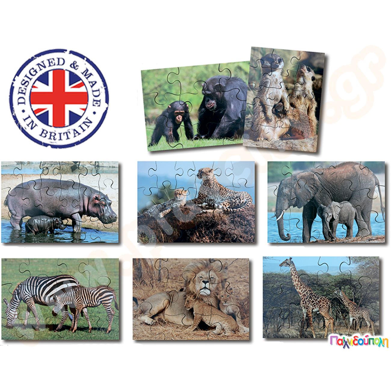 Σετ 8 ξύλινα παζλ άγρια ζώα και τα μικρά τους
