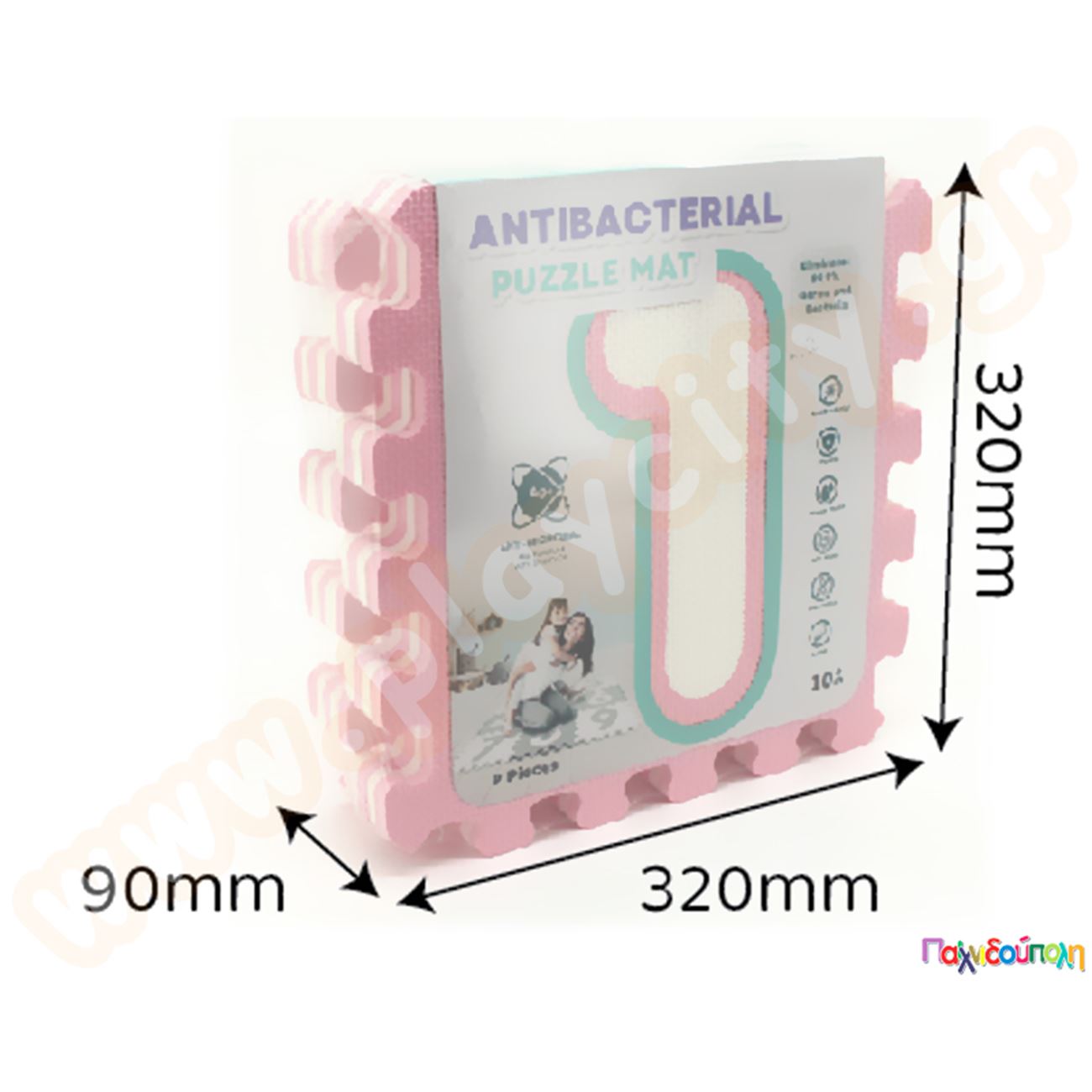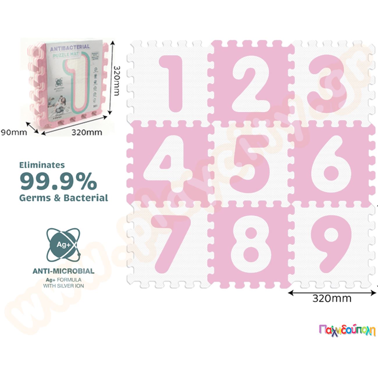 Ελαστικές πλάκες EVA με αριθμούς ροζ-άσπρο