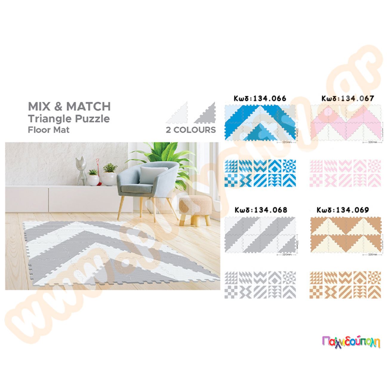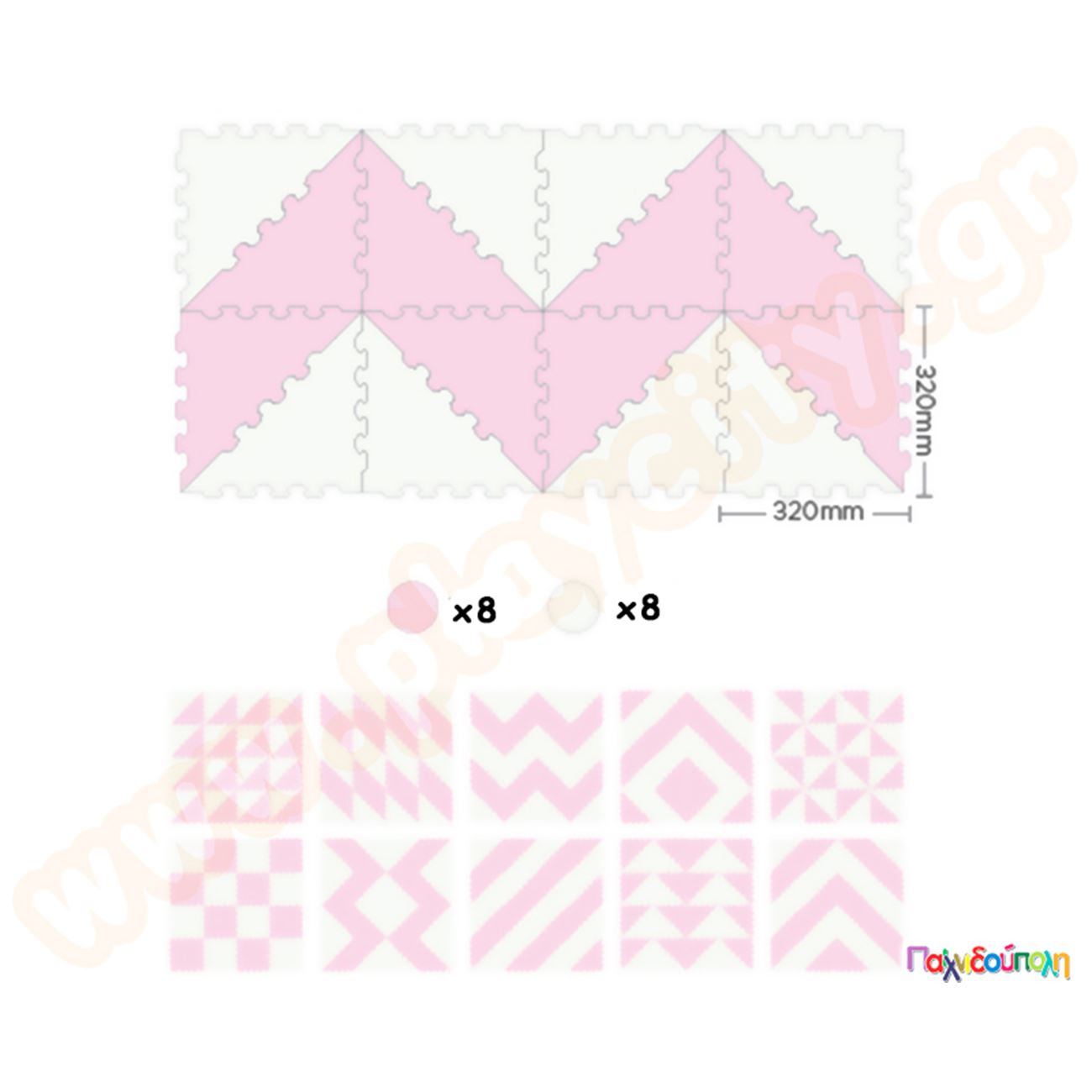 Ελαστικές τριγωνικές πλάκες EVA ροζ-άσπρο