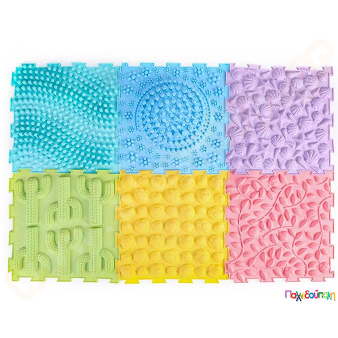 Παζλ δαπέδου με διαφορετικές υφές Σετ 6 τεμάχια