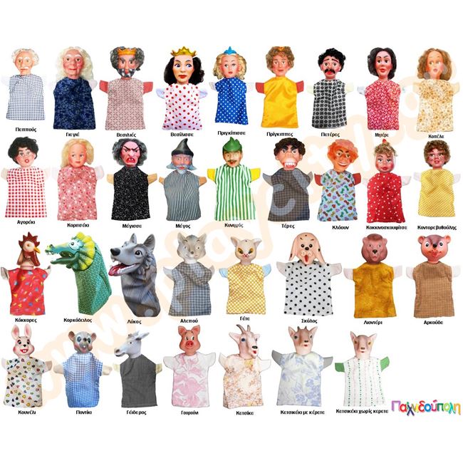 Γαντόκουκλες - Μαριονέτες κουκλοθεάτρου με μαλλιά (Φιγούρες Ανθρώπων και Ζώων)