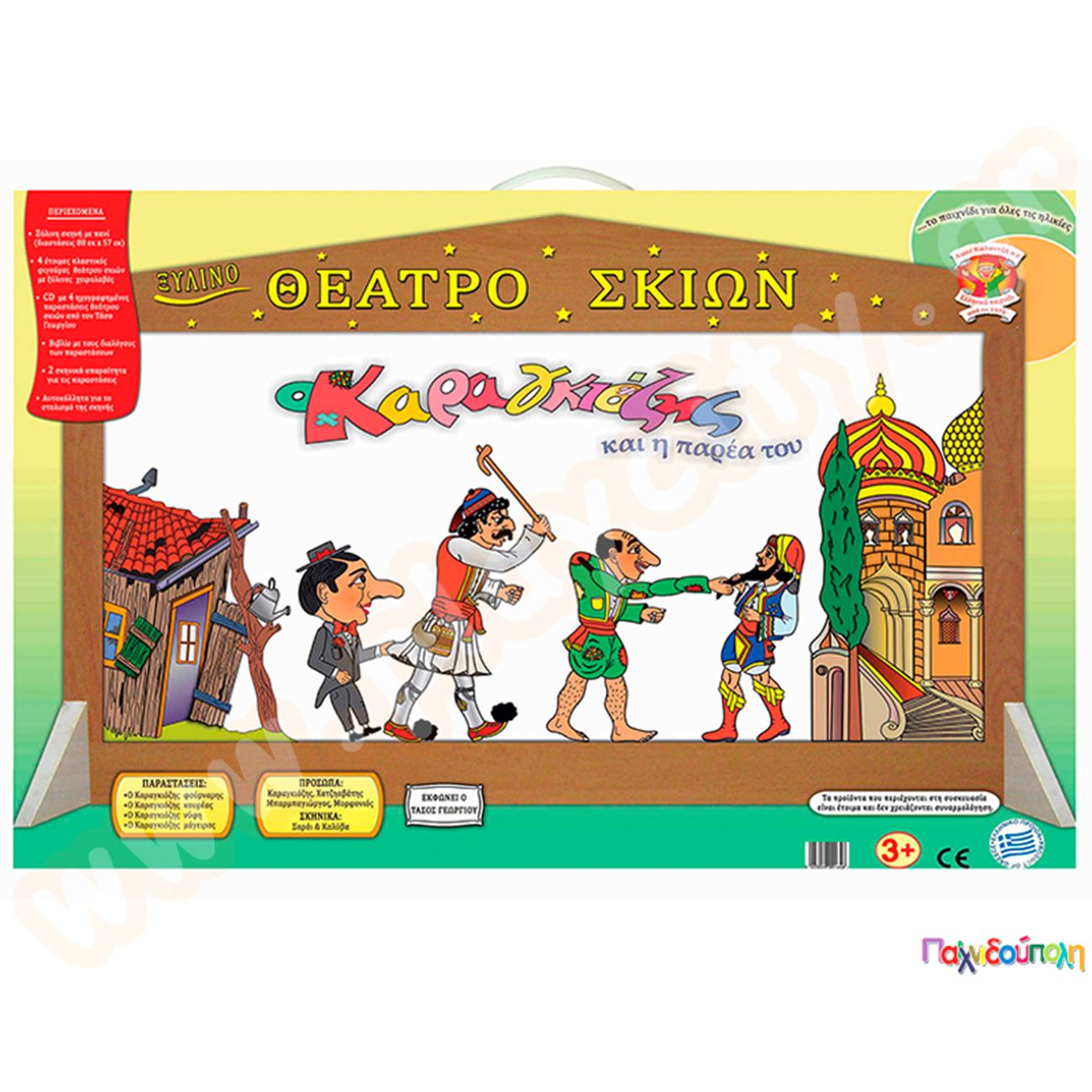 Σετ κουκλοθέατρο Καραγκιόζη (σκηνή, βιβλίο, cd, 4 φιγούρες, αυτοκόλλητα)