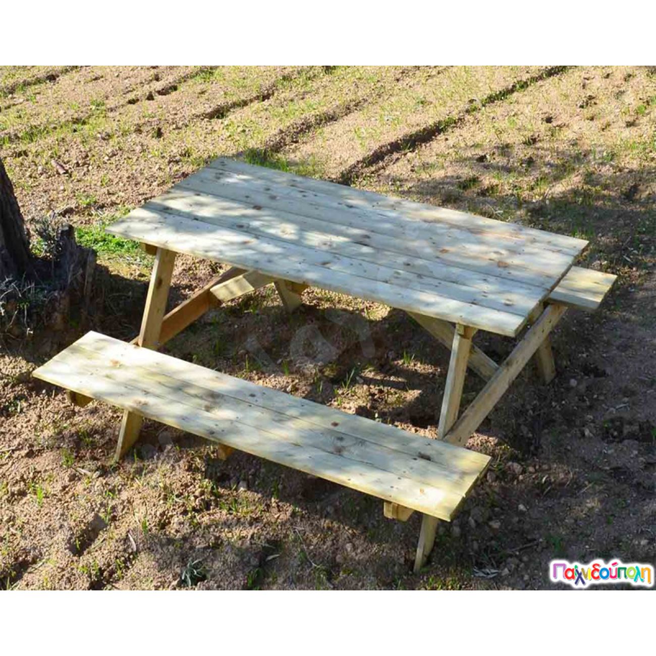 Ξύλινο τραπέζι - πάγκος πικ νικ 150 εκ.