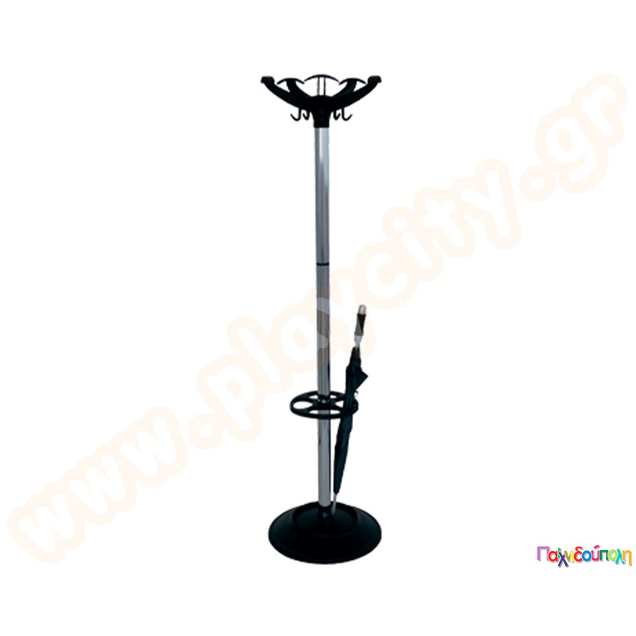 Πρόκειται για έναν εξαιρετικής ποιότητας καλόγερο με μεγάλη αντοχή και πρακτική λειτουργία. Βάση από μορφοποιημένο πολυαμίδιο διαμέτρου 4,8 εκ. Μεταλλική χρωμιωμένη κολώνα διαμέτρου 5 εκ. Ομπρελοθήκη και γάντζοι σε μαύρο πολυαμίδιο.