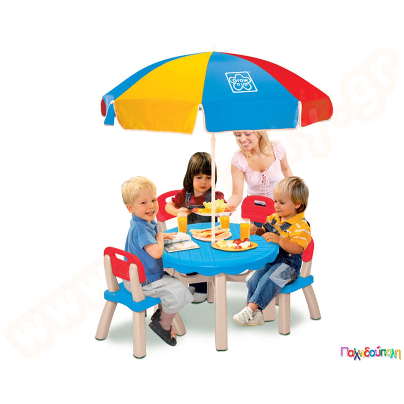 Σετ τραπέζι, 4 καρέκλες και ομπρέλα Grow n Up