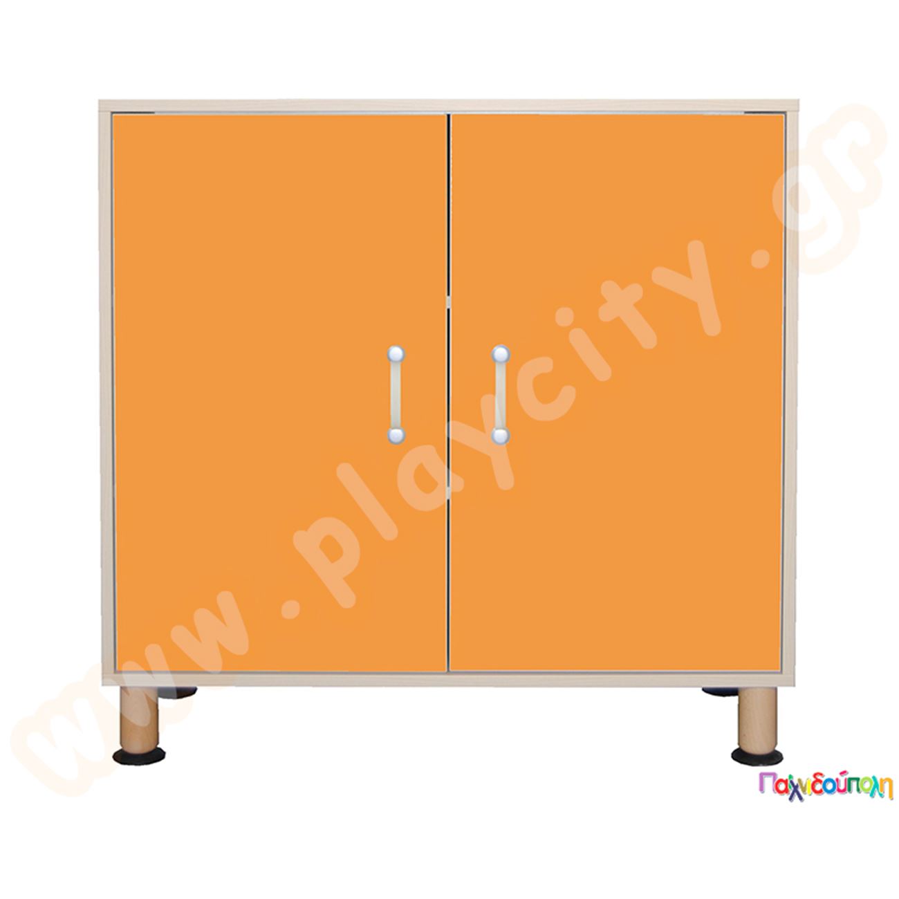 Ντουλάπα με πόρτες και δύο ράφια πορτοκαλί χρώμα
