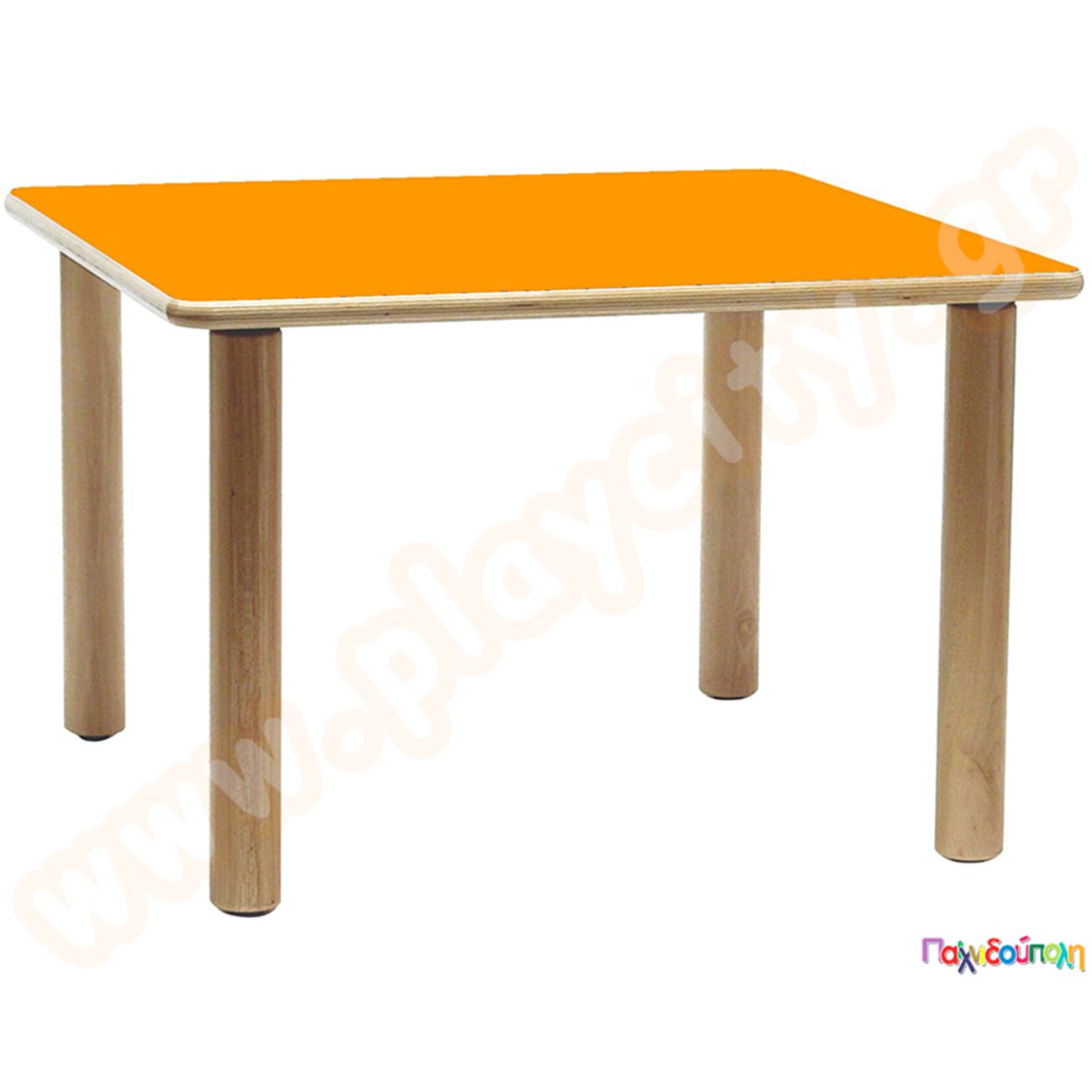 Ξύλινο Τραπέζι τετράγωνο πορτοκαλί χρώμα