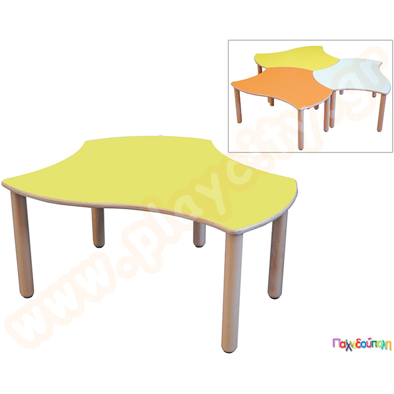 Ξύλινο Παιδικό Τραπέζι πέταλο κίτρινο χρώμα