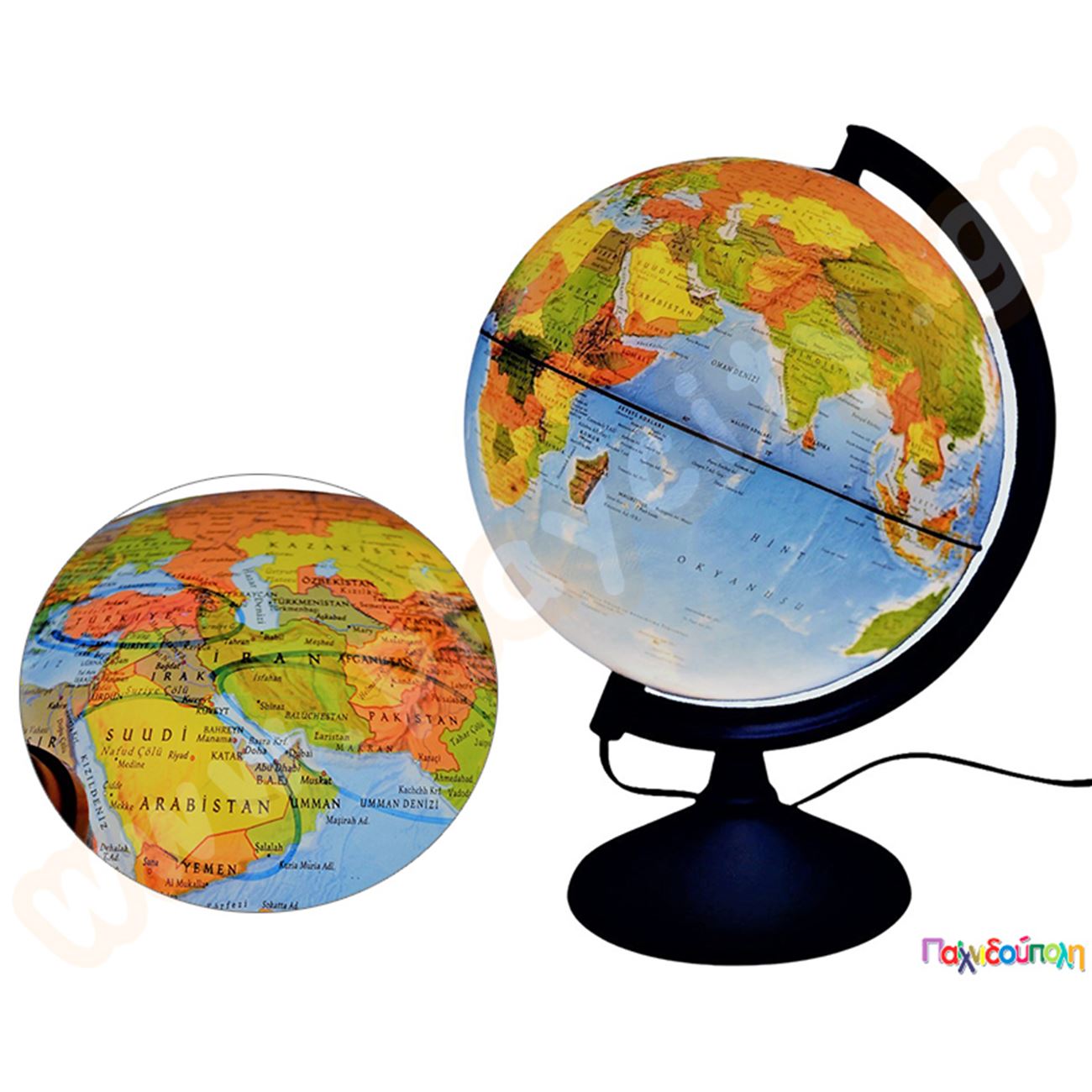 Υδρόγειος σφαίρα επανεγγράψιμη γεωφυσική-πολιτική όψη Φ 30 εκ.