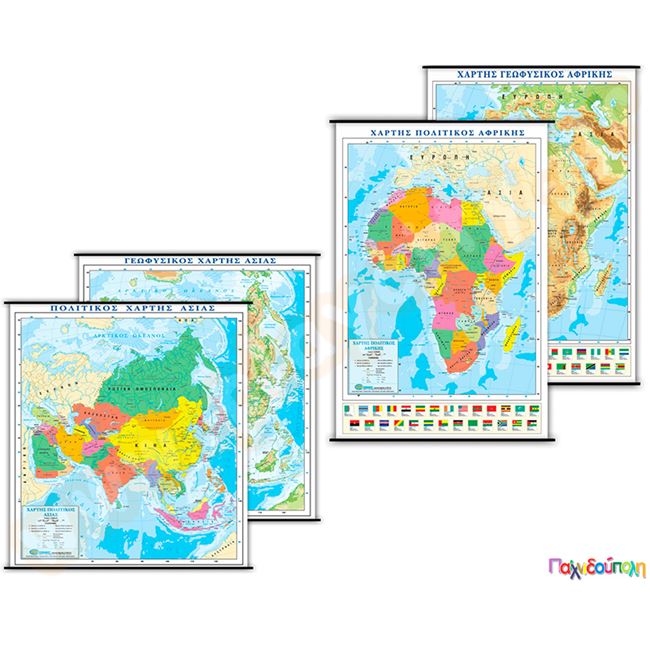 Χάρτες δύο όψεων πολιτικοί και γεωφυσικοί (Διάφορα Κράτη/Ήπειροι)