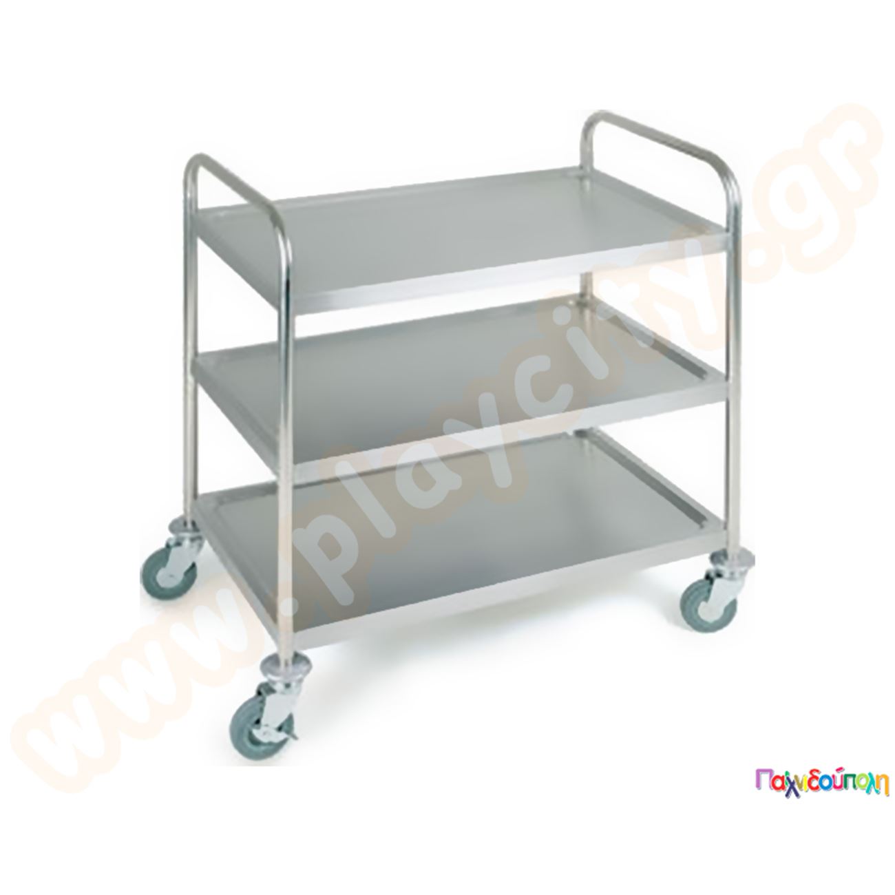 Ανοξείδωτο τροχήλατο καρότσι μεταφοράς, σερβιρίσματος 3 επιπέδων