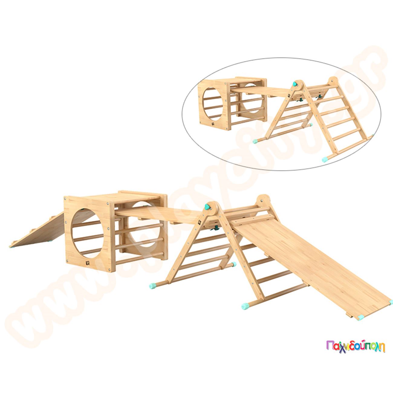 Ξύλινη γέφυρα αναρρίχησης και τσουλήθρα εσωτερικού χώρου
