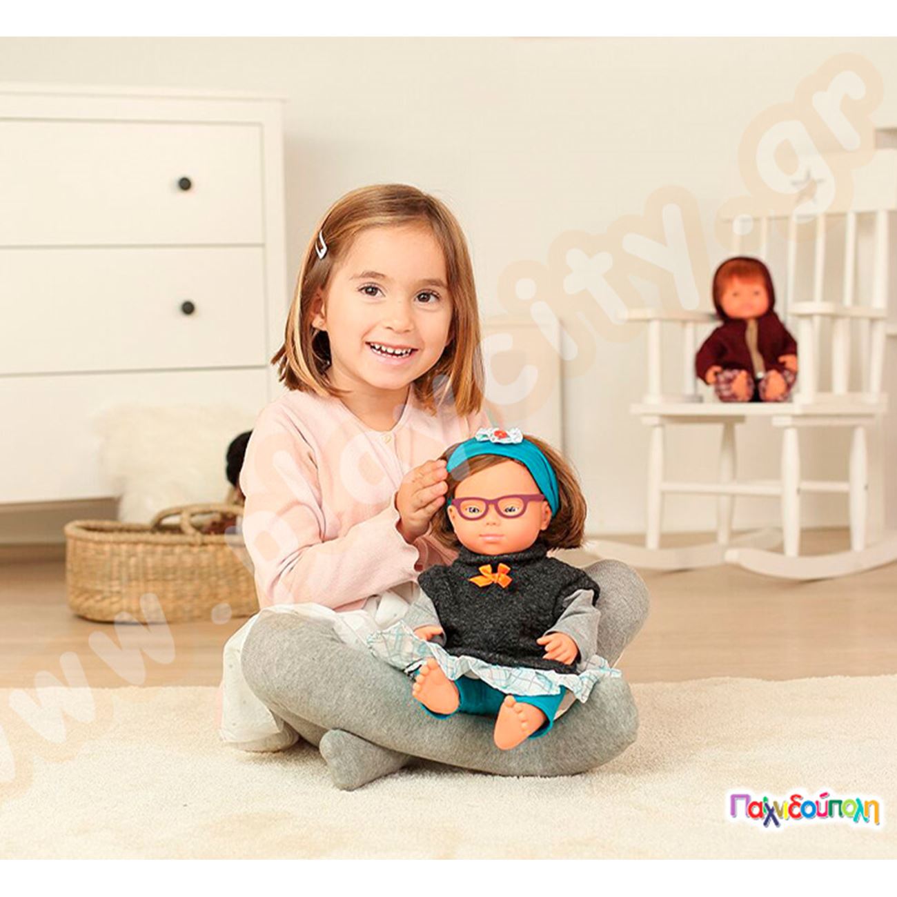 Κούκλα ξεχωριστό κοριτσάκι με γυαλιά 38 εκ.
