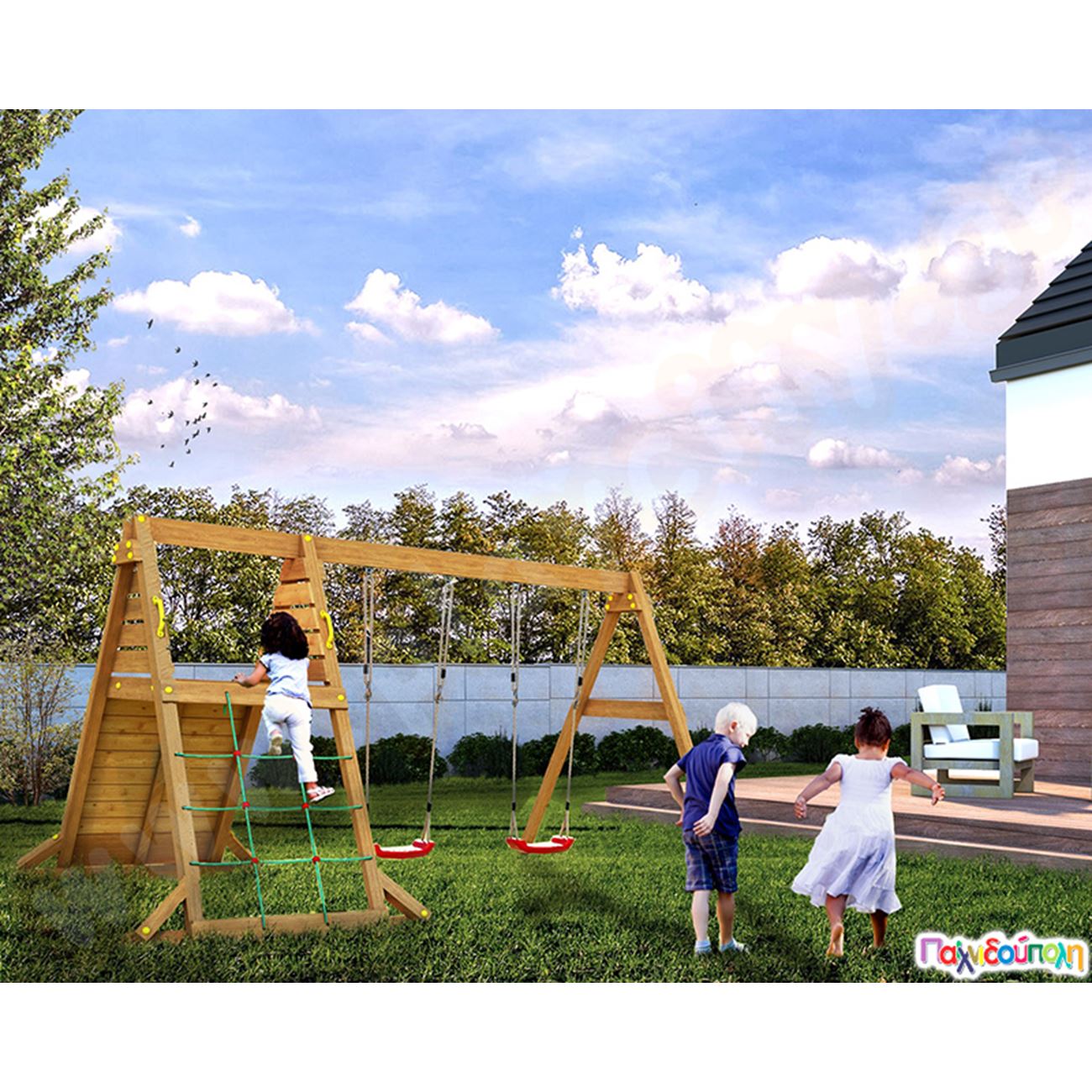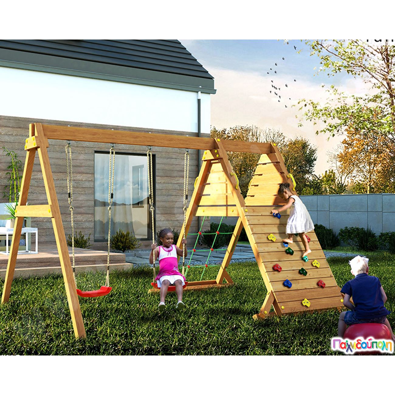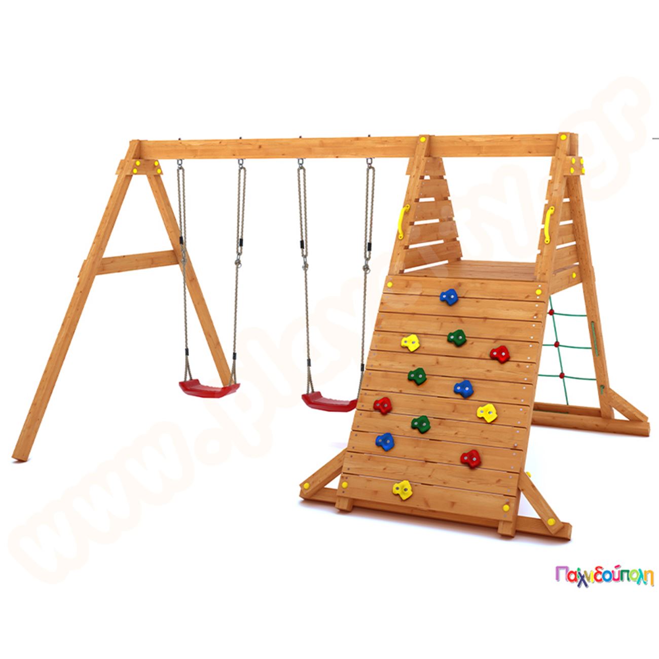 Ξύλινο σύστημα με τοίχο και δίχτυ αναρρίχησης