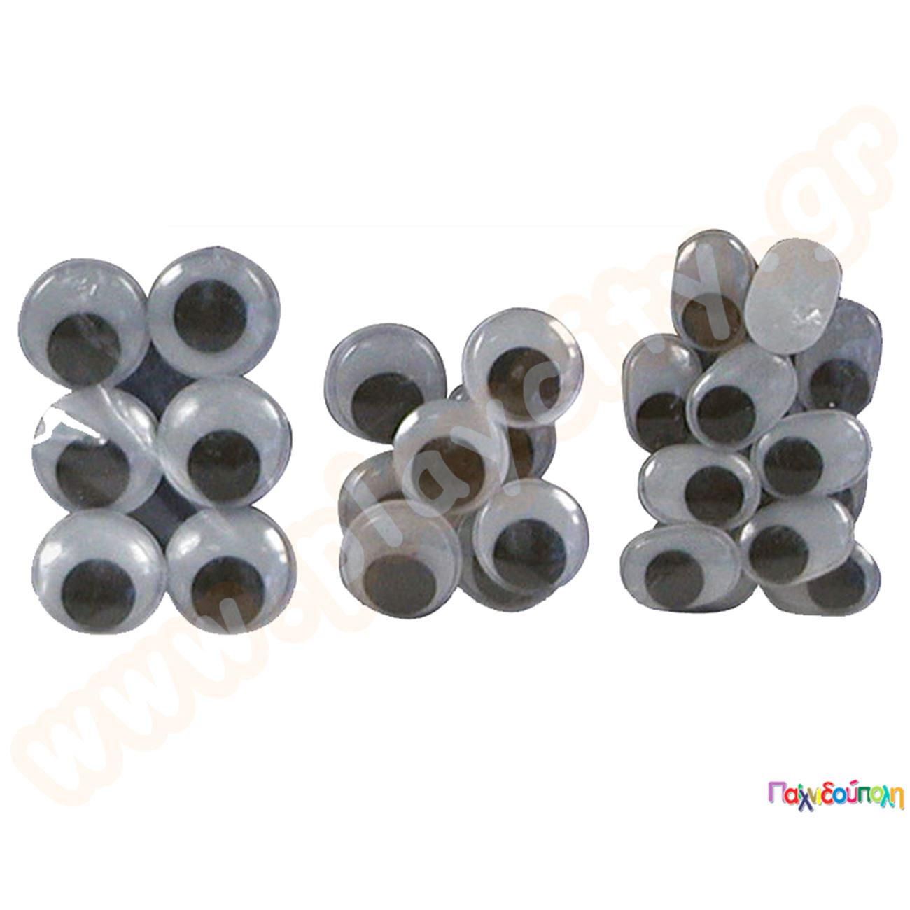 Μάτια αυτοκόλλητα οβάλ και στρόγγυλα 20mm-22 mm 28 τμχ