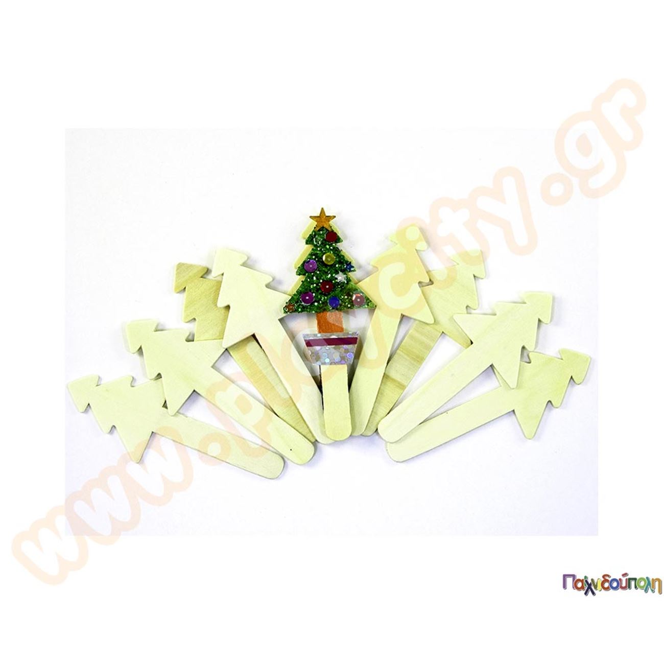Διακόσμησε ξύλινα Χριστουγεννιάτικα δεντράκια 10 τεμάχια