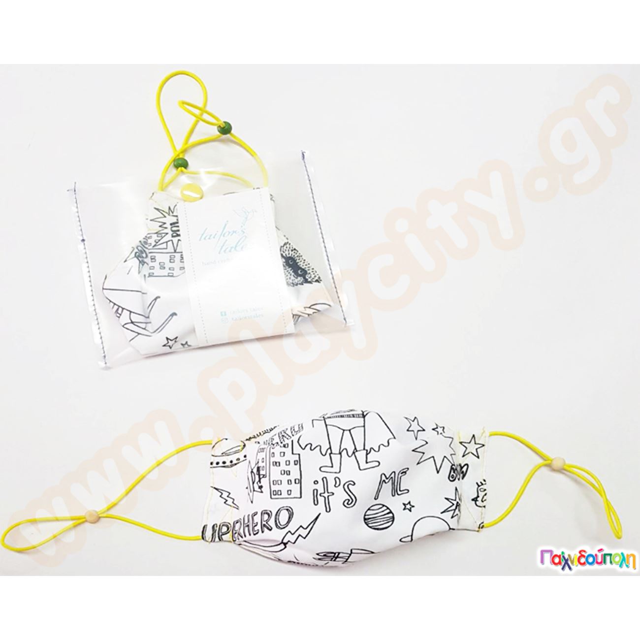 Υφασμάτινη παιδική μάσκα προστασίας με ρυθμιζόμενο λάστιχο και θήκη Σούπερ Ήρωας