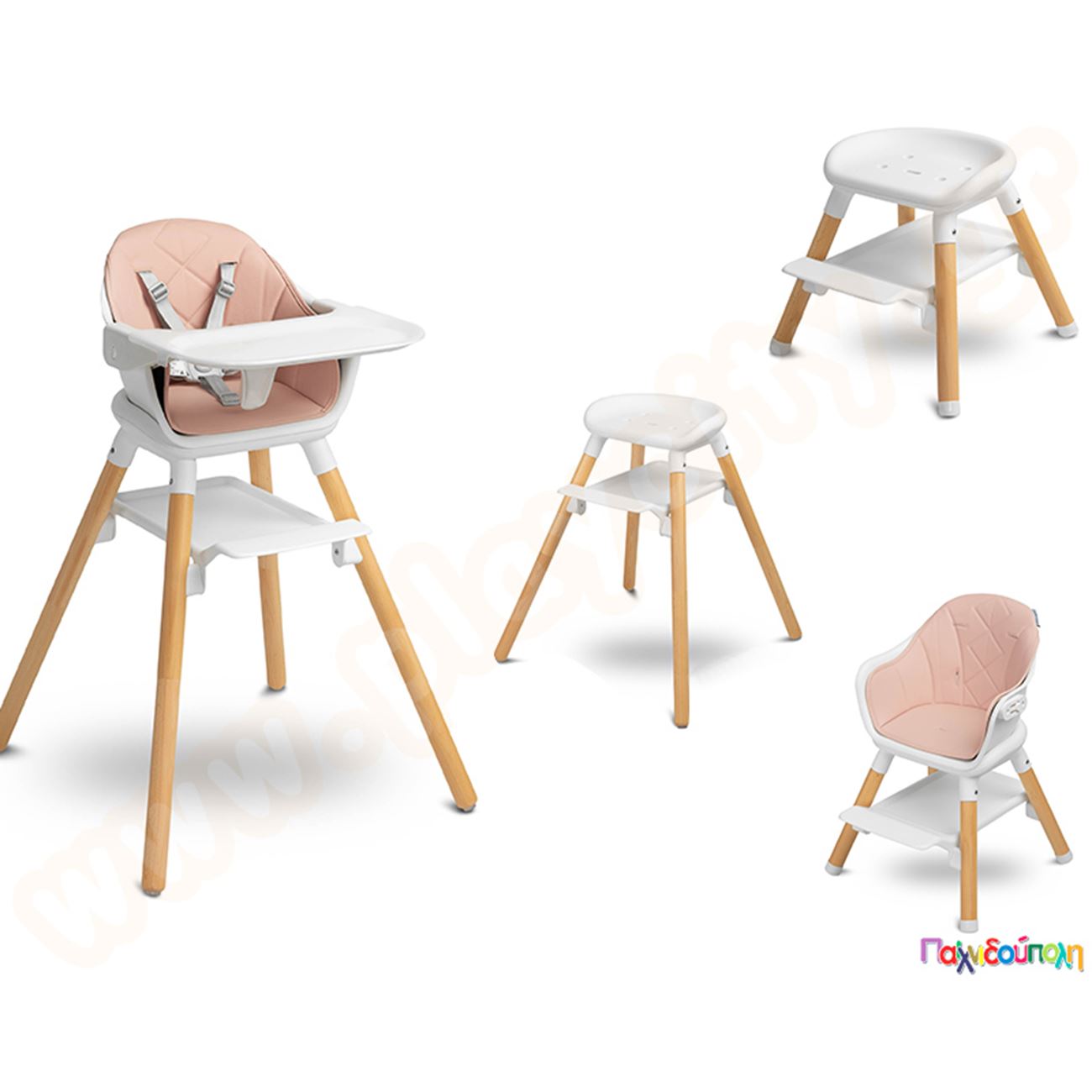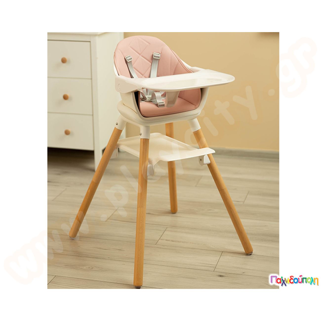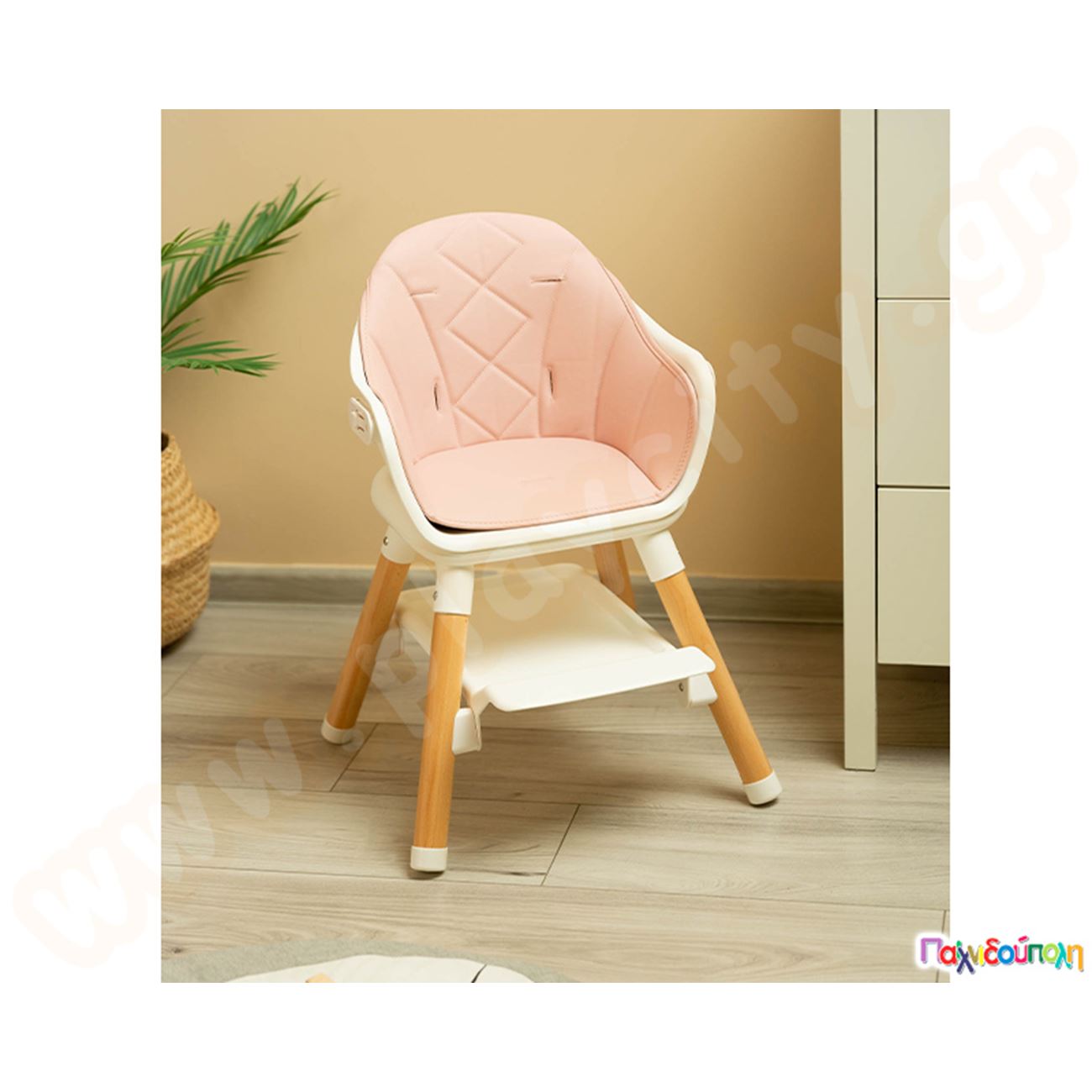 Καρεκλάκι φαγητού με ξύλινο σκελετό Ροζ