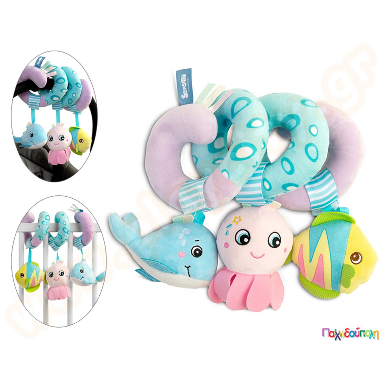 Λούτρινο σπιράλ δραστηριοτήτων κρεβατιού-καροτσιού θαλάσσια ζωάκια