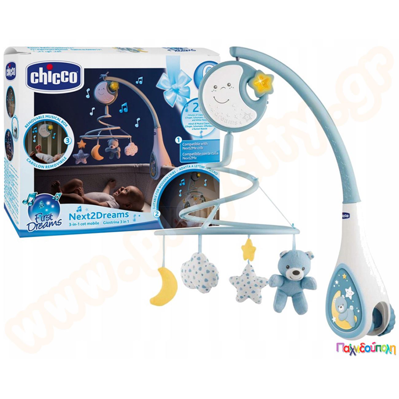 Chicco Περιστρεφόμενο carousel για παιδική κούνια μπλε