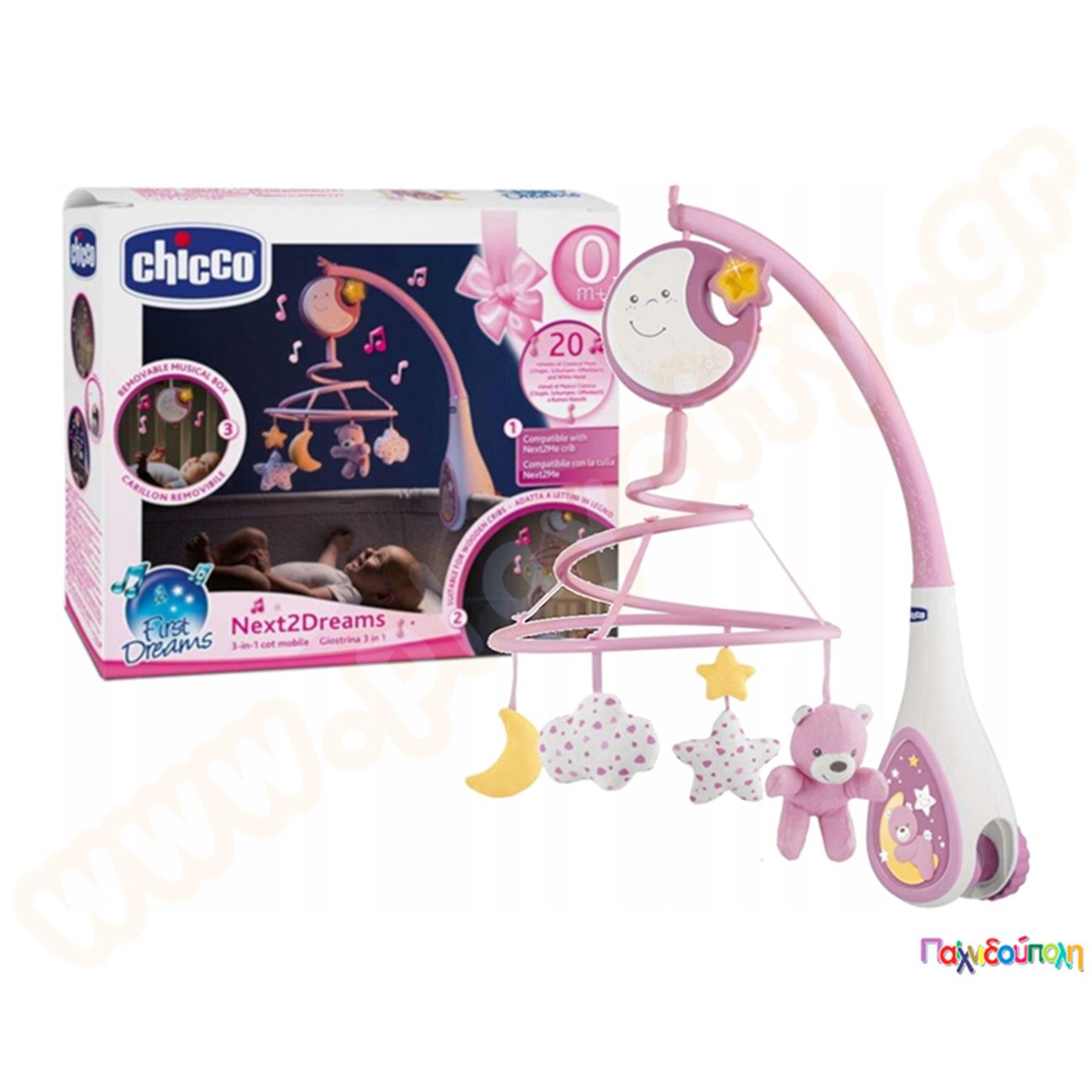 Chicco Περιστρεφόμενο carousel για παιδική κούνια ροζ